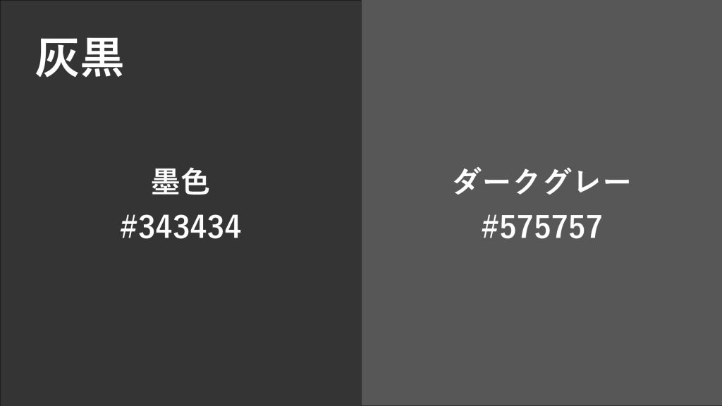 灰黒色もカラーコードは無く、色の解説に合った墨色やダークグレーといった言葉のコードを抽出してみました。