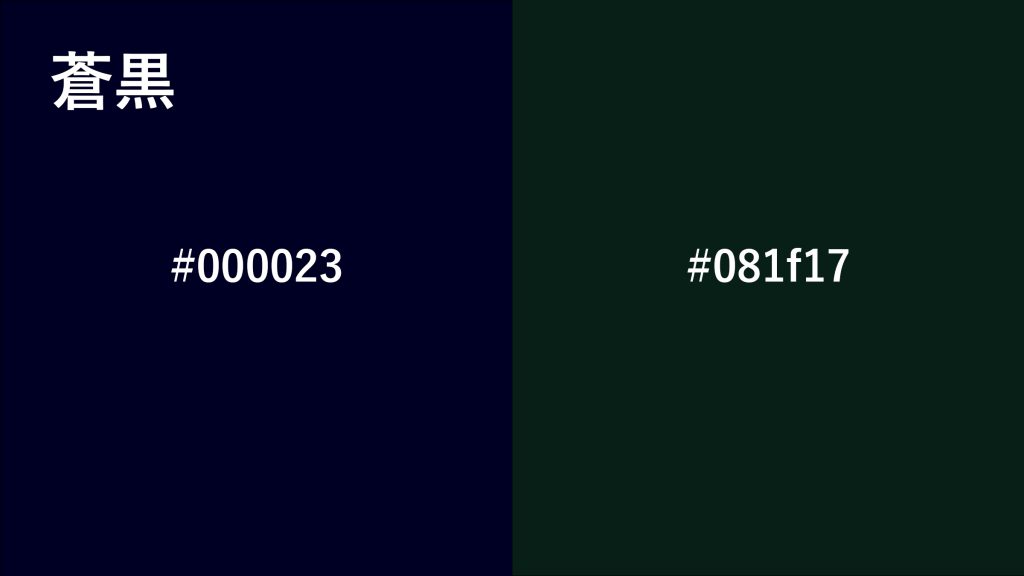「蒼黒」について複数のサイトを調べてみて、カラーコードを抽出してみました。こちらも明確なカラーコードは無いようです。