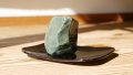 先日寒い日の朝、外に出しておいた丸みのある水石(ホルンフェルス)を部屋に入れたところ、室内の湿気でしっとりと色濃く変わっていく様を見ることができました。