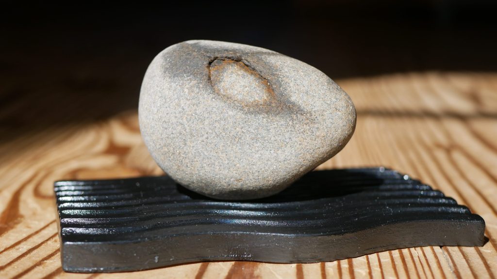 ゆで卵をむいている途中ような、「卵型の石」を見つけました。